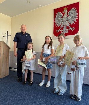 W ramach obchodów Święta Policji Komendant Powiatowy Policji w Człuchowie mł. insp. Przemysław Bujak zorganizował kameralny konkurs plastyczny pod hasłem „Policja oczami dziecka policjanta”. Uczestniczkami były cztery dziewczynki – Nina, Iza, Nadia i Pola – córki funkcjonariuszy naszej komendy.