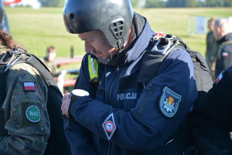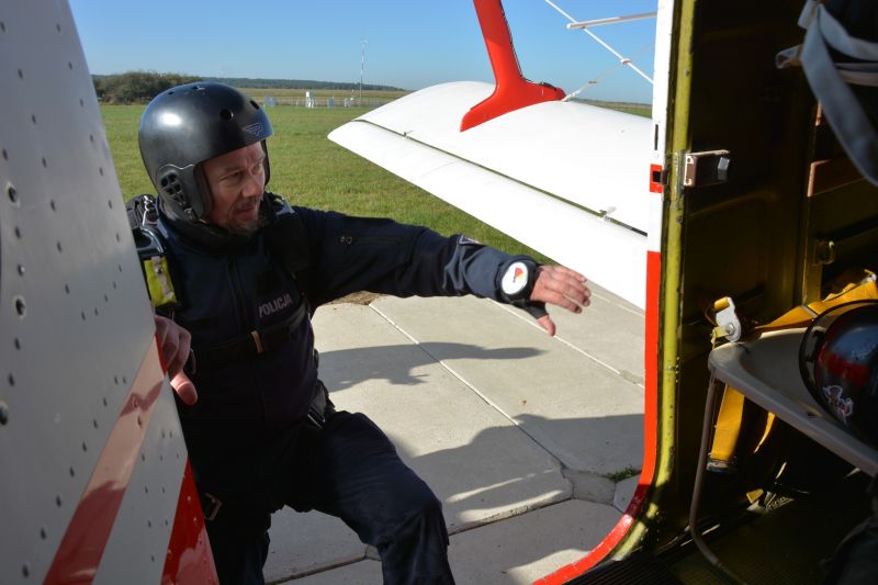 „Na wysokości zadania” – policjant z Człuchowa rozwija pasję do skoków spadochronowych