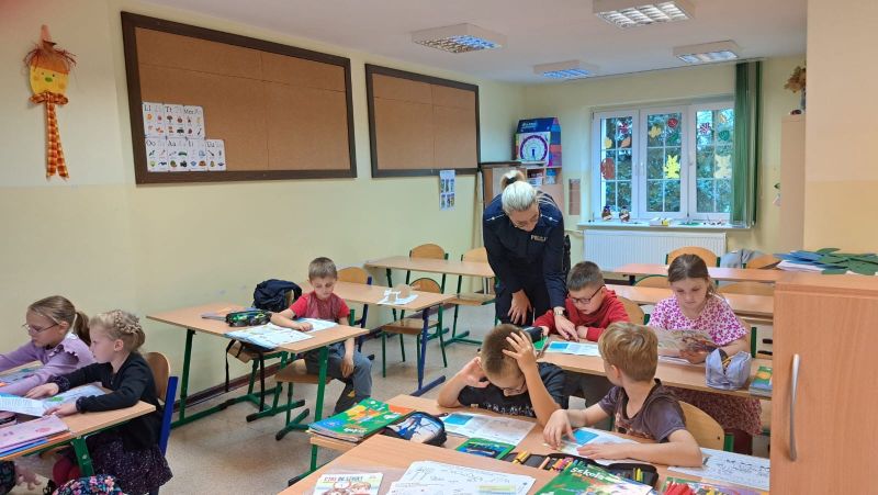 Podczas zajęć dzielnicowa w przystępny sposób przypomniała uczniom najważniejsze zasady bezpieczeństwa w drodze do i ze szkoły. Dzieci aktywnie uczestniczyły w rozmowie, chętnie odpowiadały na pytania i dzieliły się swoimi doświadczeniami.