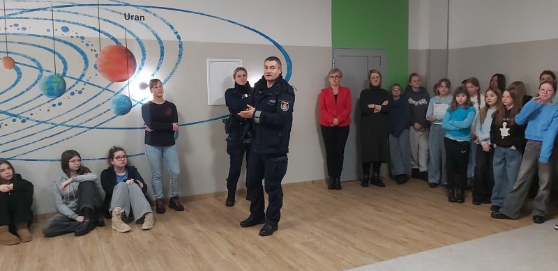 Podczas rozmowy z uczniami policjanci poruszyli m.in. zagadnienia związane z bezpiecznym spędzaniem czasu na świeżym powietrzu, zasadami korzystania z lodowisk i zamarzniętych akwenów, odpowiednim zachowaniem w czasie zabaw na śniegu oraz bezpieczeństwem w domu i w drodze. Nie zabrakło również elementów szeroko pojętej profilaktyki - funkcjonariusze przypomnieli o konieczności ostrożności w kontaktach z osobami obcymi oraz o odpowiedzialnym korzystaniu z Internetu w czasie wolnym od zajęć szkolnych.