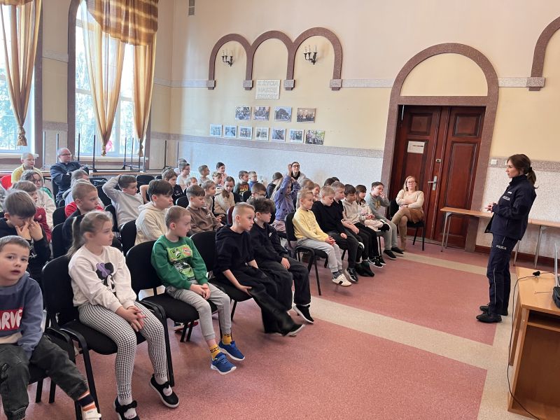 Najmłodsi uczniowie rozmawiali o zasadach bezpiecznego korzystania z Internetu. Policjantki wyjaśniły, dlaczego nie należy udostępniać swoich danych osobowych, wysyłać zdjęć nieznajomym oraz jak reagować na niepokojące wiadomości. Nie zabrakło przykładów z życia codziennego oraz aktywnej rozmowy z dziećmi, które chętnie dzieliły się swoimi doświadczeniami.